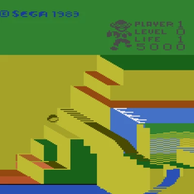 Press the fire button to jump. Timing your jumps is crucial for navigating obstacles and reaching higher platforms.